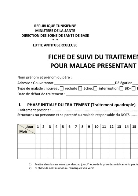 FICHE DE SUIVI DU TRAITEMENT DIRECTEMENT OBSERVE (DOTS)