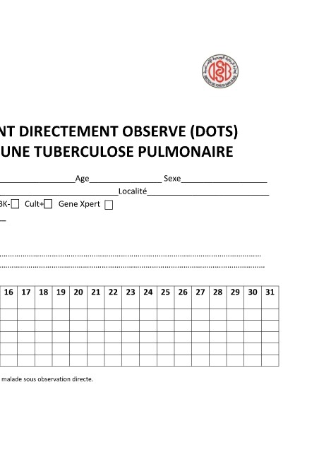 FICHE DE SUIVI DU TRAITEMENT DIRECTEMENT OBSERVE (DOTS)