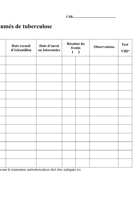 * Toute preuve documentée d'un test de dépistage du VIH effectué pendant ou avant le traitement antituberculeux doit être indiquée ici.