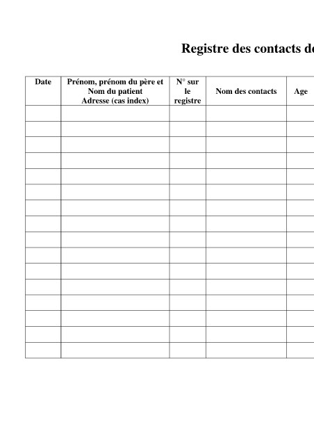 Registre des contacts de patients tuberculeux