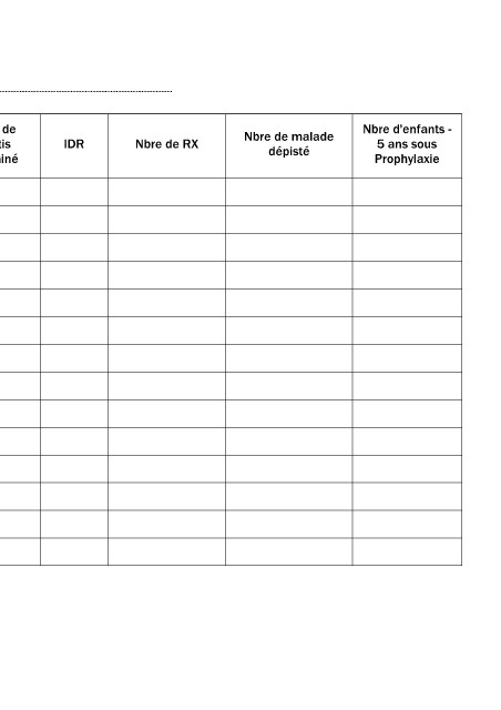 Nom du patient identifié examiné frottis IDR Nbre de RX Nbre de malade 5 ans sous