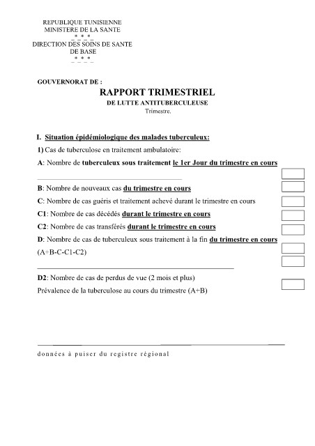 D: Nombre de cas de tuberculeux sous traitement à la fin du trimestre en cours