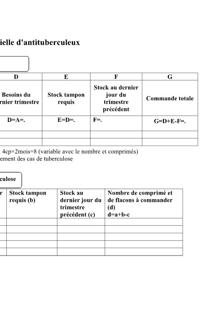 Nombre de Facteur Besoin du dernier Stock tampon Stock au Nombre de comprimé et