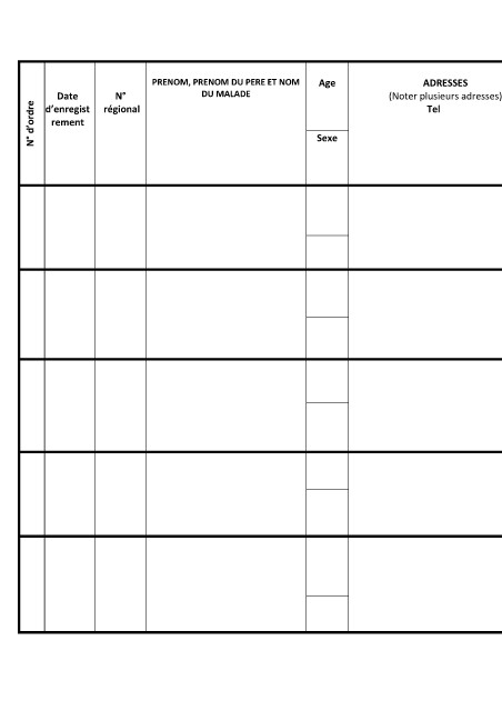Date     N°             DU MALADE                      (Noter plusieurs adresses)                 ADRESSE   HOPITAL   I, II ,   DEBUT    P/ EP