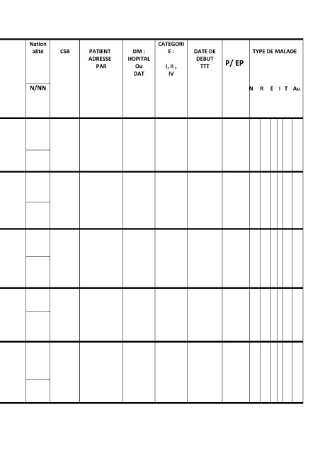 Date N° DU MALADE (Noter plusieurs adresses) ADRESSE HOPITAL I, II , DEBUT P/ EP