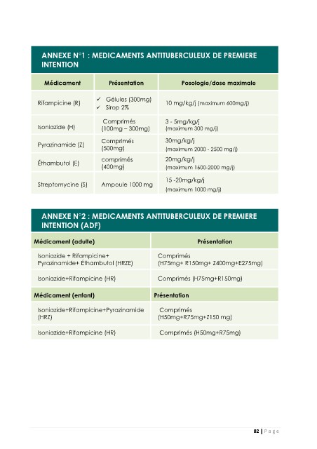 ANNEXE N°1 : MEDICAMENTS ANTITUBERCULEUX DE PREMIERE