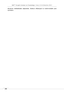 XXII è me Congrès National de Pneumologie. Tunis 14-16 Décembre 2017 structures médiastinales adjacentes, facteurs influençant la morbi-mortalité post opératoire. 185