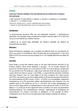 LES FACTEURS PREDICTIFS DE RECIDIVE DU PNEUMOTHORAX
