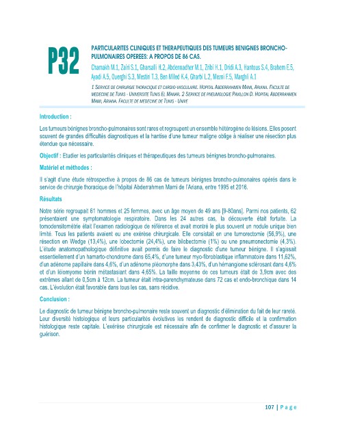 P32 PARTICULARITES CLINIQUES ET THERAPEUTIQUES DES TUMEURS BENIGNES BRONCHO-