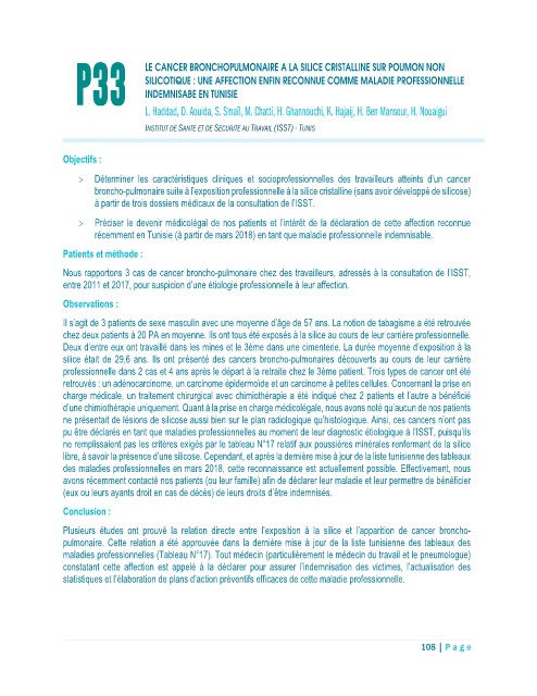 P33 LE CANCER BRONCHOPULMONAIRE A LA SILICE CRISTALLINE SUR POUMON NON