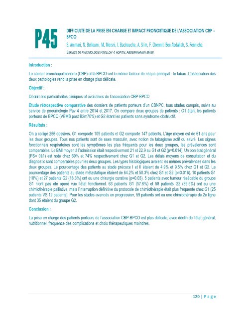 P45 DIFFICULTE DE LA PRISE EN CHARGE ET IMPACT PRONOSTIQUE DE L’ASSOCIATION CBP –