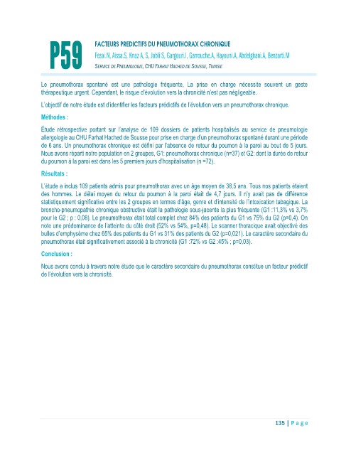 P59 FACTEURS PREDICTIFS DU PNEUMOTHORAX CHRONIQUE
