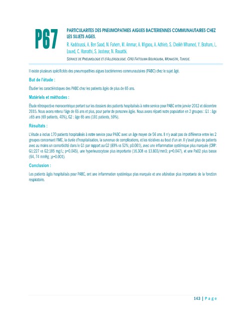 P67 PARTICULARITES DES PNEUMOPATHIES AIGUES BACTERIENNES COMMUNAUTAIRES CHEZ