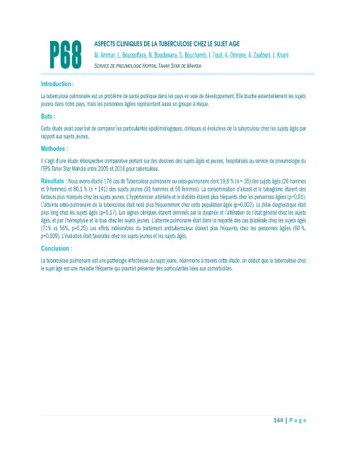 P68 ASPECTS CLINIQUES DE LA TUBERCULOSE CHEZ LE SUJET AGE