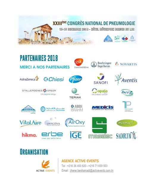 PARTENAIRES 2018 MERCI A NOS PARTENAIRES Organisation AGENCE ACTIVE EVENTS Tel : +216 26 400 820 - +216 71 659 503 Email : jihene.benhamadi@activevents.com.tn