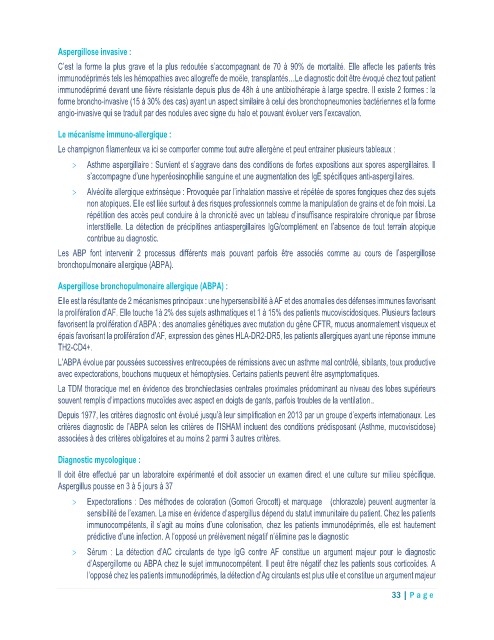 la prolifération d’AF. Elle touche 1à 2% des sujets asthmatiques et 1 à 15% des patients mucoviscidosiques. Plusieurs facteurs