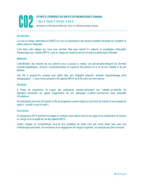 CO2            ETP BPCO: EXPERIENCE DU SERVICE DE PNEUMOLOGIE D’ANNABA