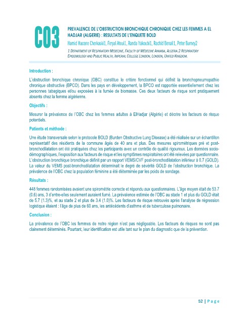 CO3             PREVALENCE DE L’OBSTRUCTION BRONCHIQUE CHRONIQUE CHEZ LES FEMMES A EL