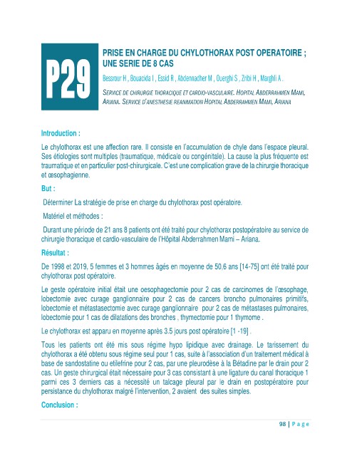 persistance du chylothorax malgré l’intervention, 2 avaient des suites simples.