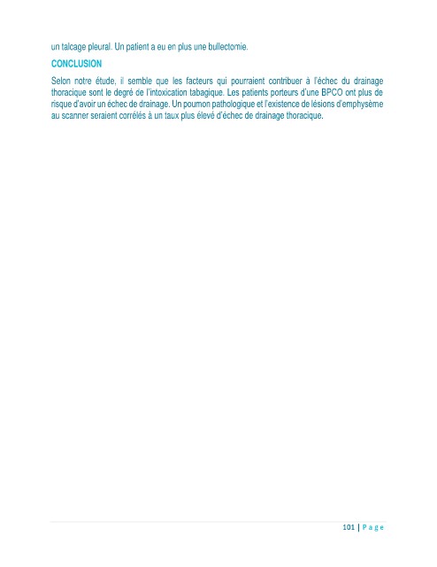 risque d’avoir un échec de drainage. Un poumon pathologique et l’existence de lésions d’emphysème