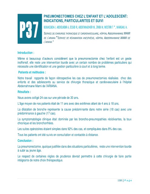 PNEUMONECTOMIES CHEZ L’ENFANT ET L’ADOLESCENT: