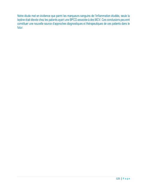 leptine était élevée chez les patients ayant une BPCO associée à des MCV. Ces conclusions peuvent