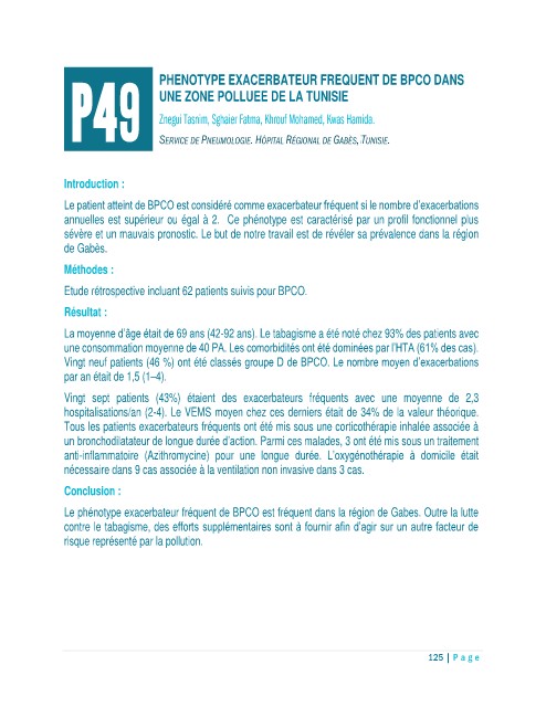 Le phénotype exacerbateur fréquent de BPCO est fréquent dans la région de Gabes. Outre la lutte