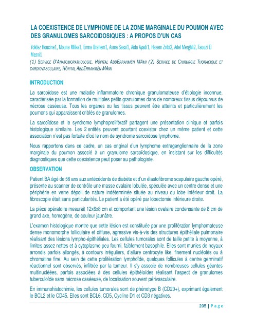 LA COEXISTENCE DE LYMPHOME DE LA ZONE MARGINALE DU POUMON AVEC