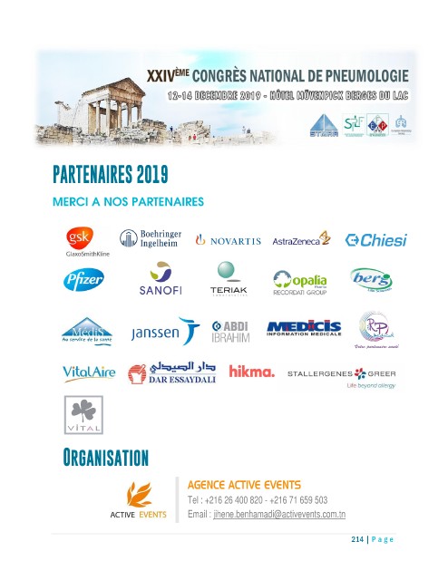 PARTENAIRES 2019 MERCI A NOS PARTENAIRES Organisation AGENCE ACTIVE EVENTS Tel : +216 26 400 820 - +216 71 659 503 Email : jihene.benhamadi@activevents.com.tn