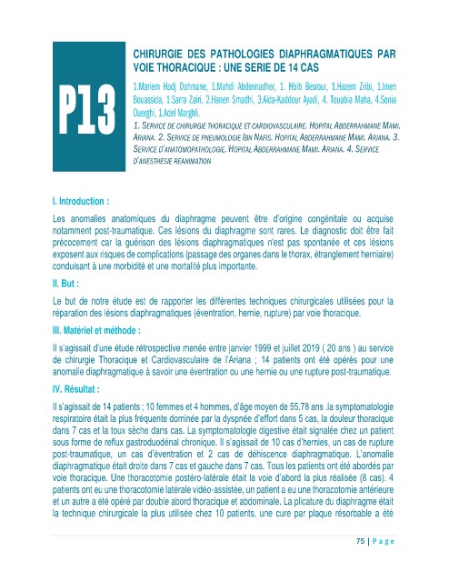 de  chirurgie  Thoracique  et  Cardiovasculaire  de  l’Ariana  ;  14  patients  ont  été  opérés  pour  une