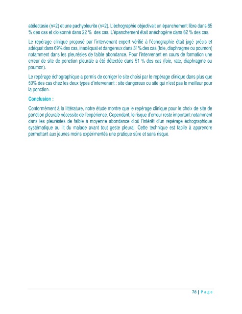 atélectasie (n=2) et une pachypleurite (n=2). L‘échographie objectivait un épanchement libre dans 65