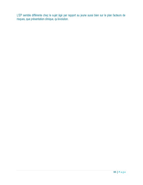 L’EP semble différente chez le sujet âgé par rapport au jeune aussi bien sur le plan facteurs de risques, que présentation clinique, qu’évolution.
