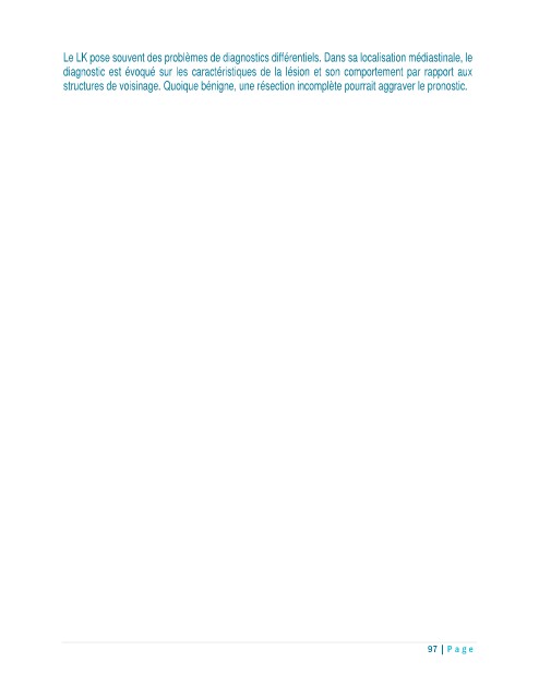 Le LK pose souvent des problèmes de diagnostics différentiels. Dans sa localisation médiastinale, le