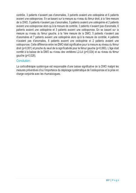 avaient une ostéoporose alors qu’à la mesure de contrôle, 3 patients n’avaient pas d’anomalie, 6