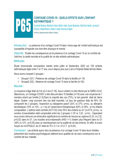 Introduction : La présence d’un contage Covid-19 dans l’entourage de l’enfant asthmatique est