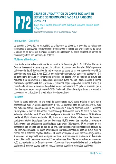 Sousse, intéressant le cadre soignant : ils ont tous répondu au questionnaire : Brief cope score