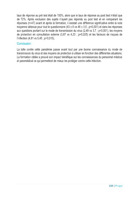 taux de réponse au pré test était de 100%, alors que le taux de réponse au post test n’était que