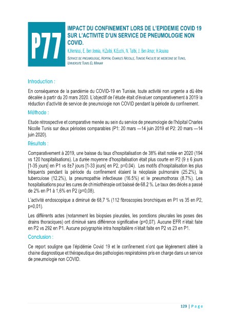 SERVICE DE PNEUMOLOGIE, HOPITAL CHARLES NICOLLE, TUNISIE FACULTE DE MEDECINE DE TUNIS,