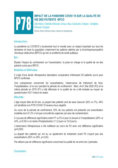 P78 IMPACT DE LA PANDEMIE COVID 19 SUR LA QUALITE DE