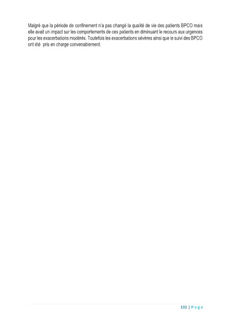 Malgré que la période de confinement n’a pas changé la qualité de vie des patients BPCO mais