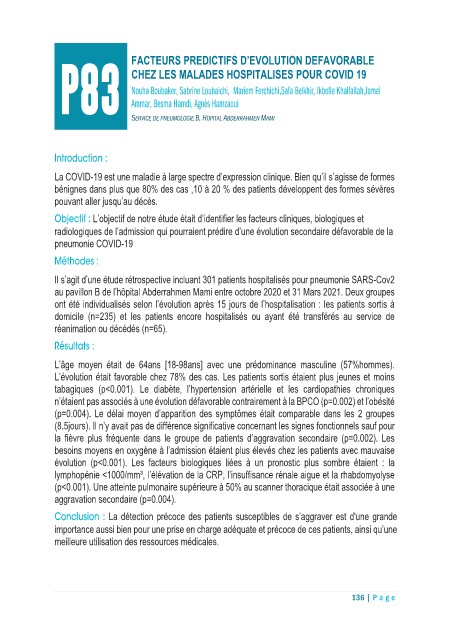 P83 FACTEURS PREDICTIFS D’EVOLUTION DEFAVORABLE