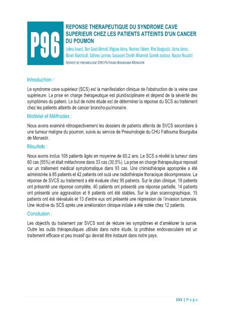 Nous avons examiné rétrospectivement les dossiers de patients atteints de SVCS secondaire à
