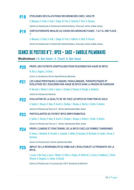 Modérateurs : N. Ben Salah, H. Cherif, A. Ben Saad