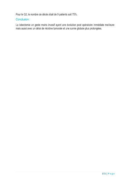 Pour le G2, le nombre de décès était de 9 patients soit 75%.
