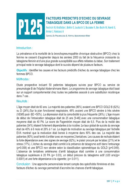P125 FACTEURS PREDICTIFS D’ECHEC DU SEVRAGE