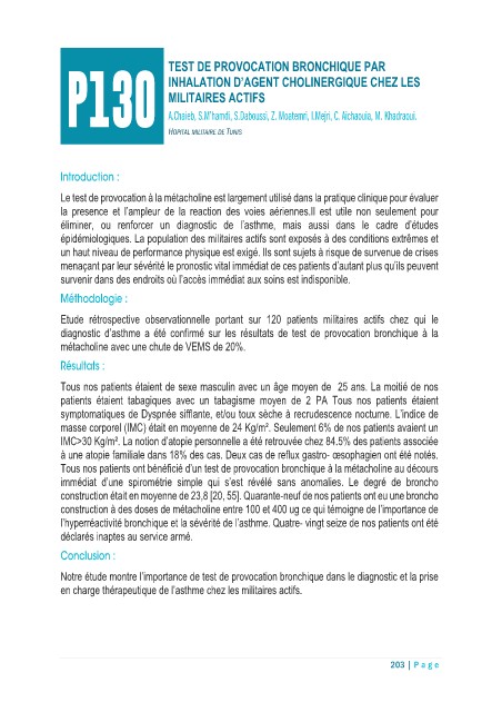 P130 TEST DE PROVOCATION BRONCHIQUE PAR