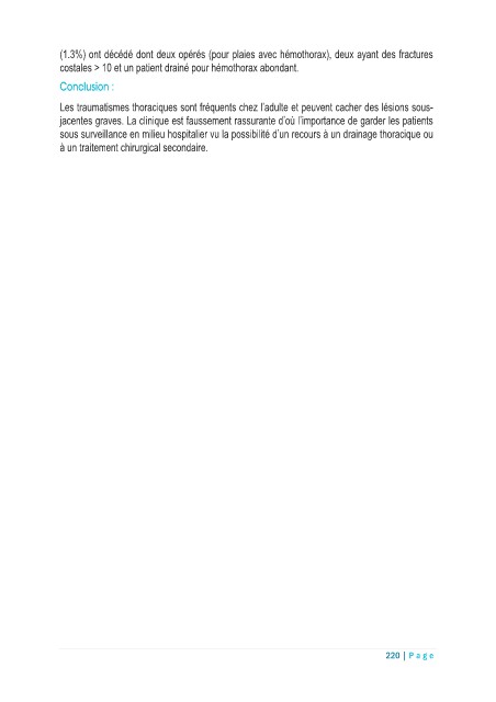 (1.3%) ont décédé dont deux opérés (pour plaies avec hémothorax), deux ayant des fractures