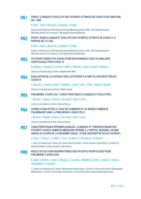 P81 PROFIL CLINIQUE ET EVOLUTIF DES PATIENTS ATTEINTS DE COVID-19 EN FONCTION
