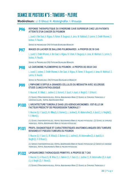 SEANCE DE POSTERS N°5 : TUMEURS - PLEVRE