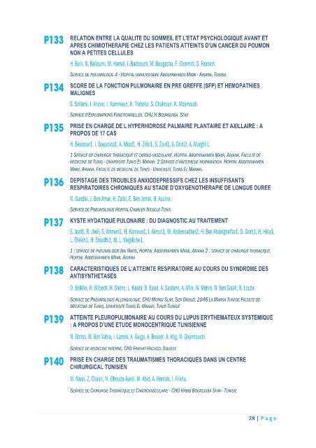 1 : SERVICE DE PNEUMOLOGIE IBN NAFIS, HOPITAL ABDERRAHMEN MAMI, ARIANA 2 : SERVICE DE CHIRURGIE THORACIQUE,